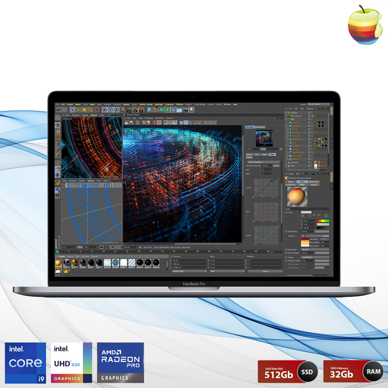 Aluminum (Space Gray) – Touch Bar with integrated Touch ID sensor – 15.4″ Retina display 2880 x 1800 with IPS technology – Intel ® Core i9™ 8 Core processor – 32GB DDR4 – 1TB NVMe SSD – Intel UHD Graphics 630 – AMD Radeon Pro 560X with 4GB of DDR5 memory – Wi-Fi 5 (802.11ac) + BT – 83.6 Wh battery – 720p HD camera – Backlit QWERTY Keyboard,